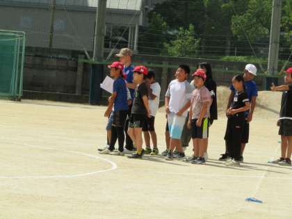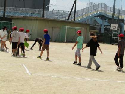 9月27日土曜日に、創立50周年記念の航空写真を撮影しました。子どもたちは、並ぶ場所に向かって集まります。