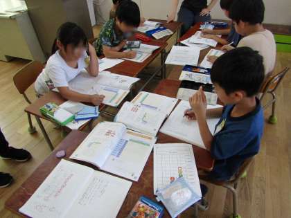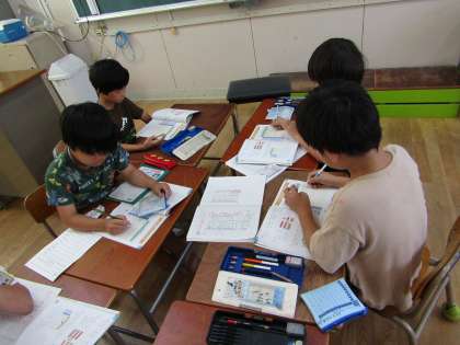 2年生が学習している九九を使って表を作っていました。九九をきちんと覚えて使えるようにがんばっています。
