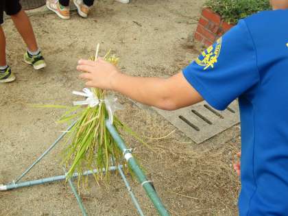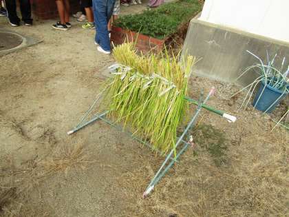 干した稲はしばらくしたら雨露をしのげるところへ移動します。お米にするのはまだまだこれからですね。