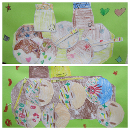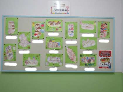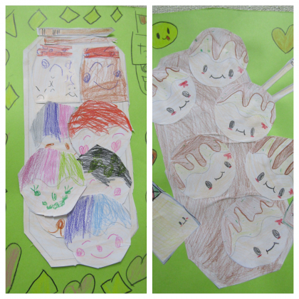 1年生のたこやきの作品です。とっもかわいいたこやきがたくさん並んでいます。