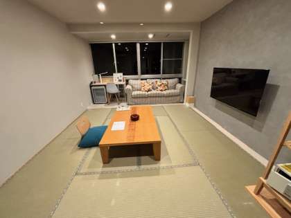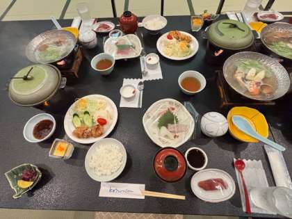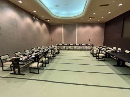 部屋は全室オーシャンビューです。晩御飯会場は椅子とテーブルのセッティングでした。すごい!