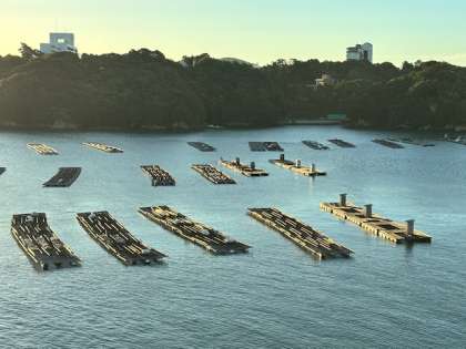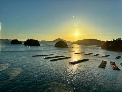 鳥羽湾の日の出です。子どもたちも起床して今日の準備を始めています。