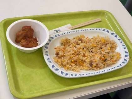 お昼ご飯です。カレー、チャーハン、伊勢うどんとクーポンで好きなものを頼んでいます。