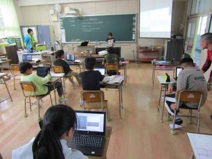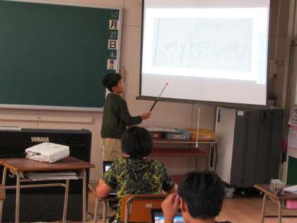 5年生が理科の時間に「ヒトのたんじょう」で調べて作った新聞の内容を発表していました。受精やへその緒のことや出産の様子などよく調べていました。