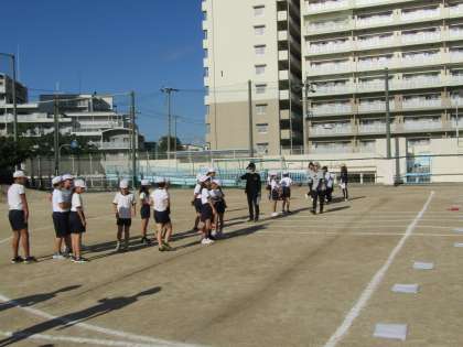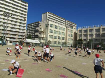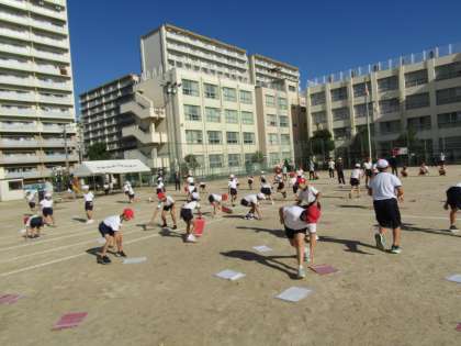 今日は、全校競技のやり方を練習しました。得点が大きいので、頑張って練習しました。