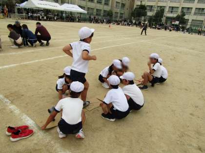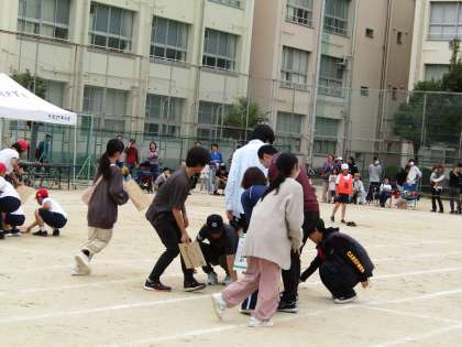 3,4年生の保護者参加競技は「きずなの橋」です。最後に祝50周年のメッセージもだしていました。