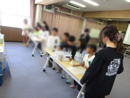 4年生が水道教室を受けました。水道局の方の出前授業です。汚れた水をきれいにするにはどうするのかを実験を通して学びました。