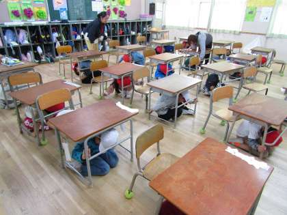 南海トラフ地震が発生する確率が上昇してきているようです。教職員も子どもたちも、緊張感をもって訓練します。
