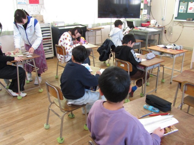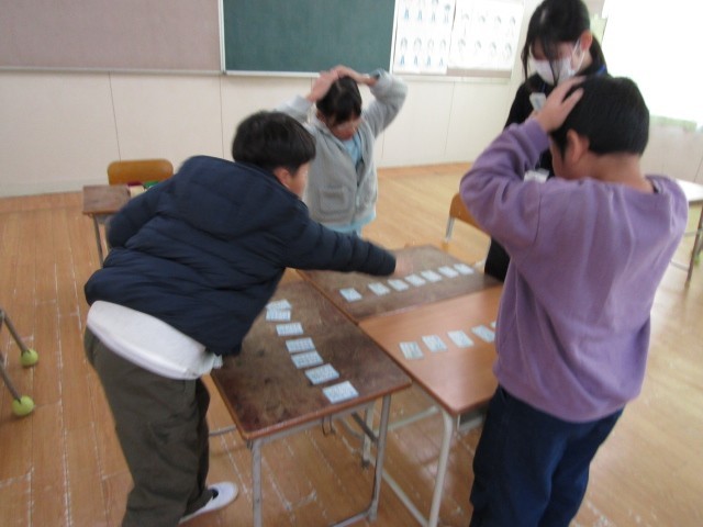 4年生が、算数や国語の2学期のまとめの学習をしていました。終わった人はシールをもらっていましたし、すべて終了した人は学年室で百人一首に挑戦していました。