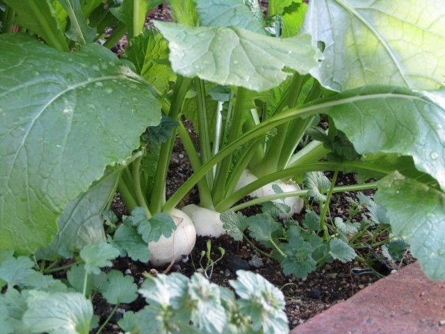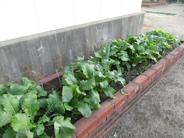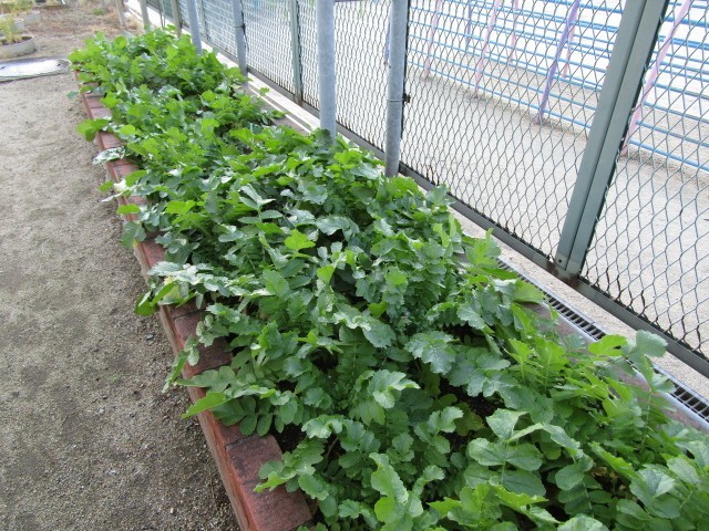 学習園では、給食委員会が育てている冬野菜「大根とかぶ」が大きく成長しています。