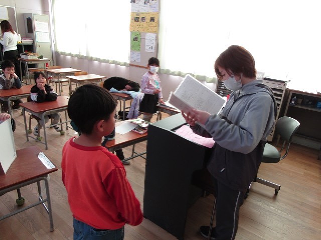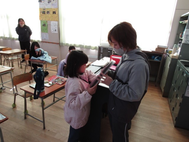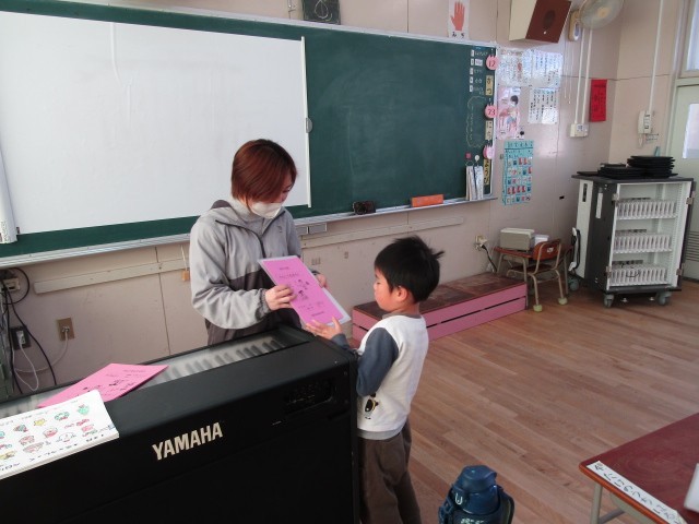 1年生も、1人1人通知表をいただきました。先生から2学期の頑張りをほめていただいて、とてもうれしそうでした。