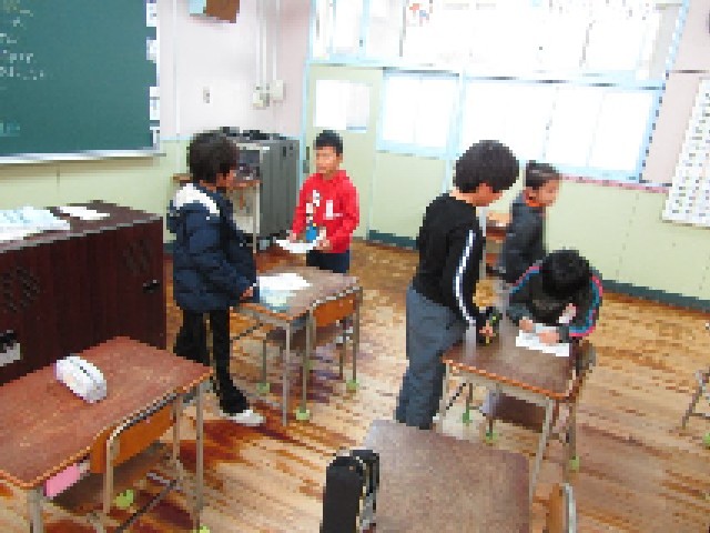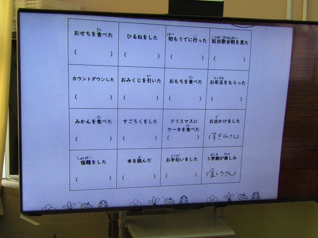 3年生は「冬休みのビンゴ」をしていました。じゃんけんをして新年のあいさつをして、質問に答えてもらいます。とても楽しく過ごしていました。