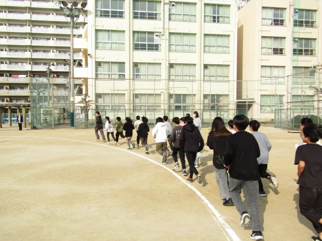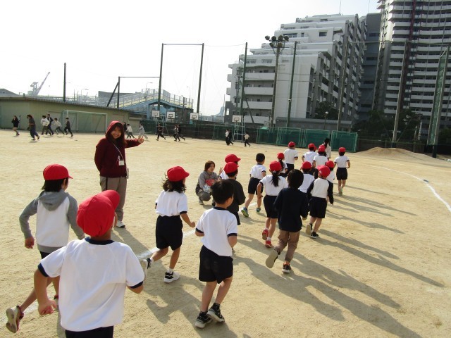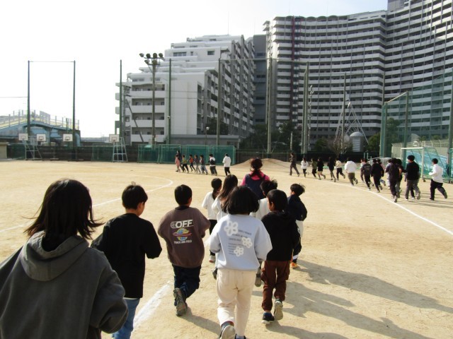 今日は、冬の体力作り「ランランタイム」をしました。全員軽やかに走っています。すこし気温が上がってきたので汗ばんでいる子がたくさんいました。