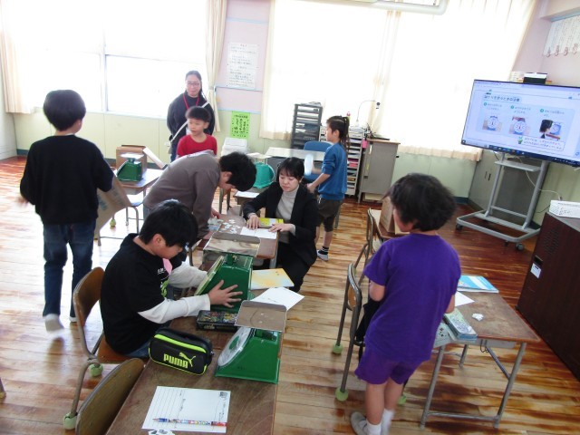 3年生が算数の時間に「防災リュック」を作っていました。子どもが背負える防災リュックの重さは3Kgいないです。中に入れるものの重さと用途をよく考えて消えていきます。計算で調べたり、実際に重さを測ったりしながら考えていました。