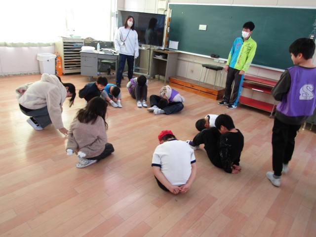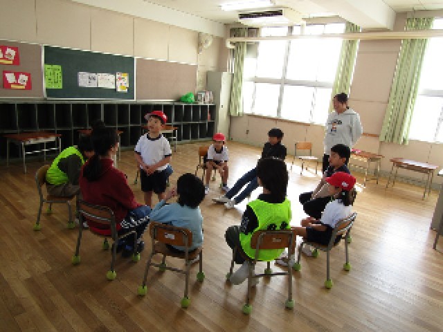 今日は、なかよしタイムの日です。ハンカチ落としやけん玉、〇〇バスケットなど、縦割り班ごとに考えた遊びを仲よくしていました。