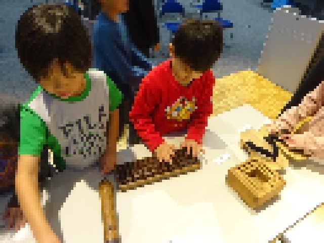 3年生が社会見学で「くらしの今昔館」に出かけました。はじめに、ワークショップで、むかしの道具を体験させていただきました。教科書で見たことのある本物の道具に興味津々です。