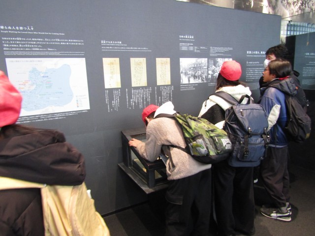 戦時中の暮らしのブースでは、戦地からの手紙をよんだり人々の暮らしの様子を見たりして、当時の様子について考えていました。
