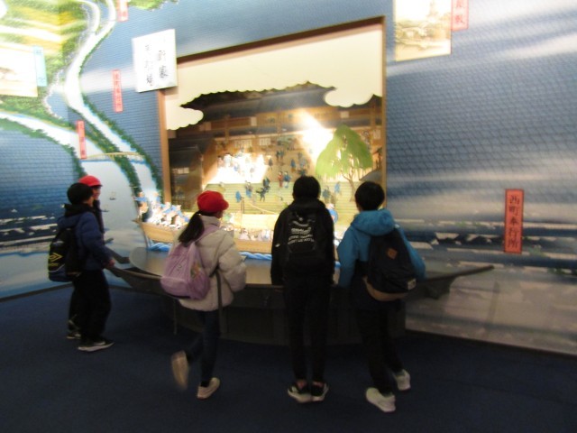 難波の宮から大大阪時代まで、子どもたちは大阪の歴史を展示物を通じて学んでいました。近代の大阪の様子に驚いている子どもがたくさんいました。