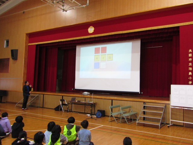 最後の呪文を唱えて、無事に魔王を封印することに成功した池島小学校の子ども達です。最後の今日の振り返りをして「なぞ解き」イベントは終わりです。