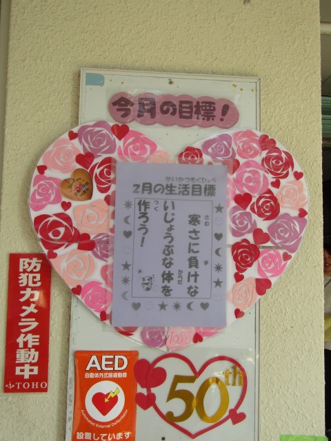今月の生活目標は「寒さに負けないじょうぶな体を作ろう」です。外で元気よく遊びましょう。