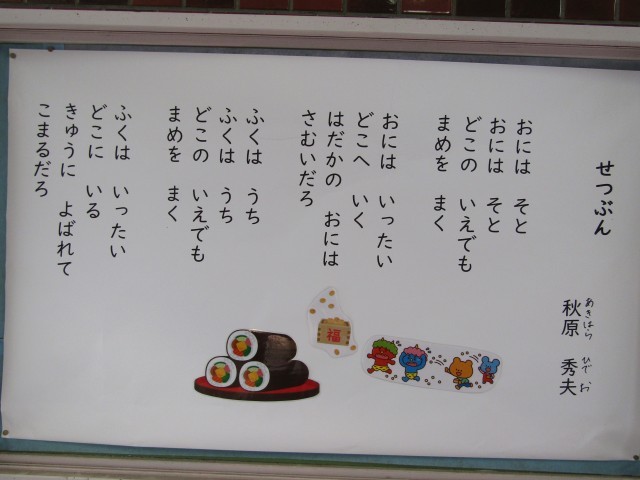 今月の詩 公開日 2026/02/04 更新日 2026/02/04 お知らせ 今月の詩は、秋原秀夫作「せつぶん」です。昨日2月3日は節分、今日2月4日は立春です。暖かくなるといいですね。 いいね(0)