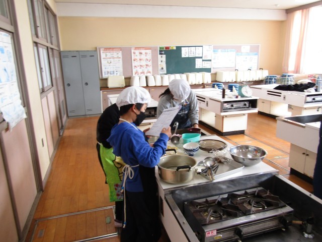 5年生は家庭科の調理実習をしていました。ごはんとみそ汁を作っていました。にぼしからだしを取って、ご飯をなべで炊いていました。おいしくできますように。
