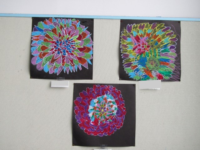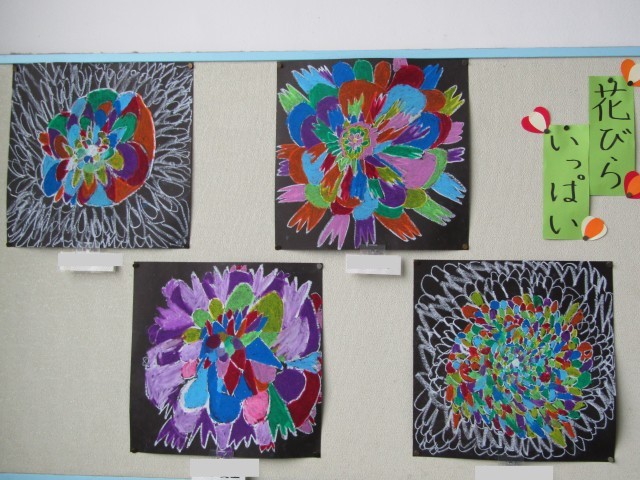 3年生の作品です。「花びらいっぱい」とても色合いの美しい作品です。