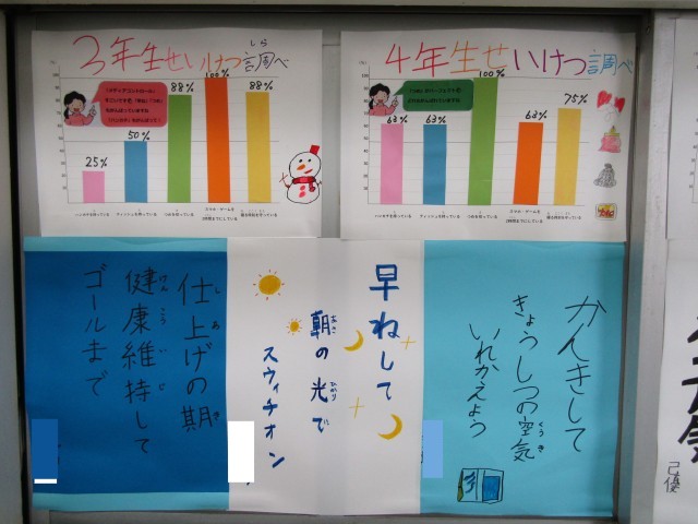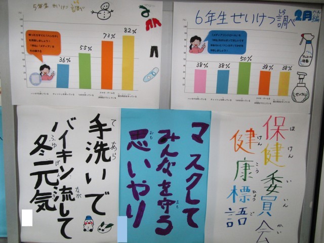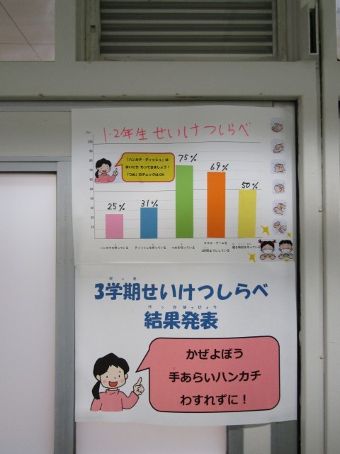 3学期の健康調べの結果です。ハンカチはきちんと持ってほしいです。
