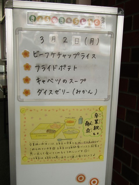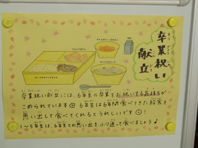 今日は、卒業お祝い献立で、ビーフケチャップライスです。