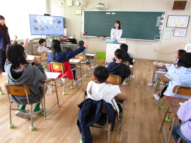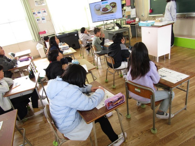4年生が食育の時間に「よくかんでたべる」ことの大切さを学びました。卑弥呼の時代には1食に4000回も噛んでいたそうです。現代は平均620回です。子ども達にはよく噛んで健康な体になってほしいです。よく噛むためには、良い姿勢、口を閉じて、飲み込んでから次の食べ物を口に入れるなど、できることがたくさんあることを知りました。