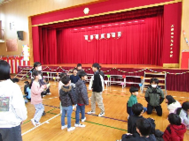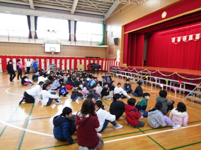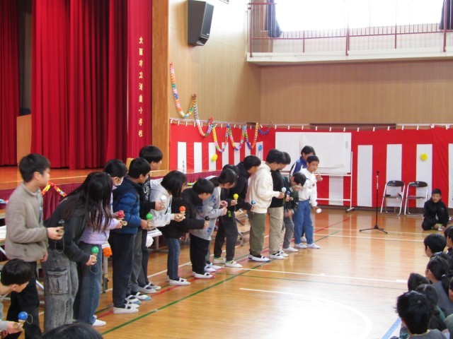 次は6年生と一緒に最後の縦割り班活動をしました。6年生に関するマルバツクイズです。「6年生の中に、一日も休まず元気に学校に来た人はいる」「二重跳びで70回以上跳んだ人がいる」最後は、「1分以内に6年生全員でけん玉を成功させることができる」でした。どうなったかな。