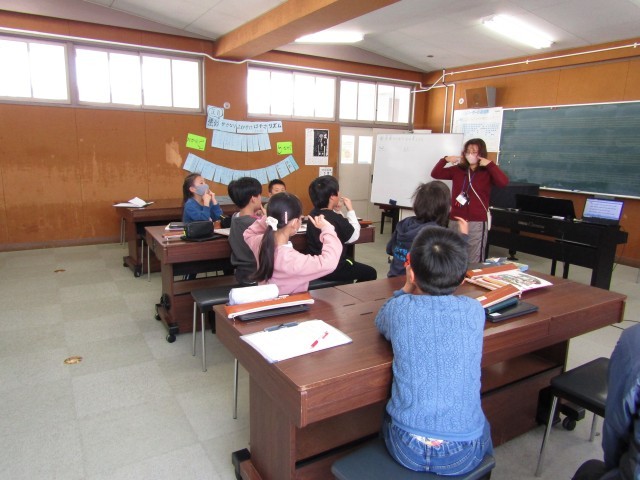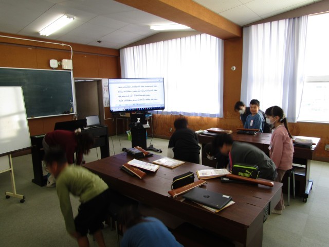 3年生が音楽の時間に「Head shoulders knees & toes」を歌いながら踊っていました。英語の歌も楽しく歌って踊れましたね。