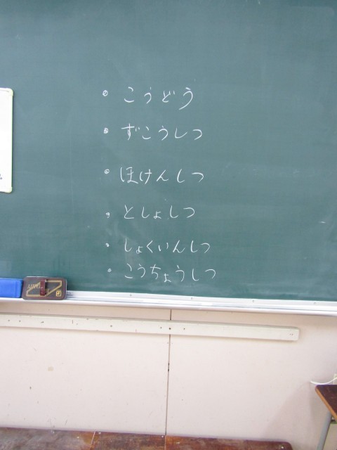 「講堂」「図工室」「保健室」「図書室」「職員室」「校長室」