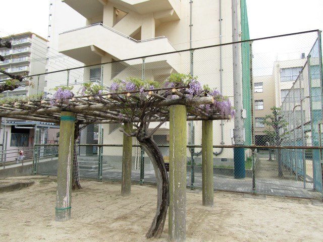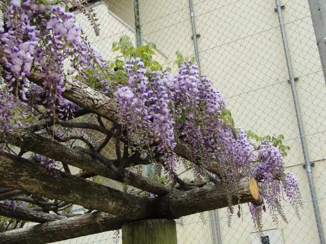校庭の端に藤棚があります。今がちょうど見頃です。