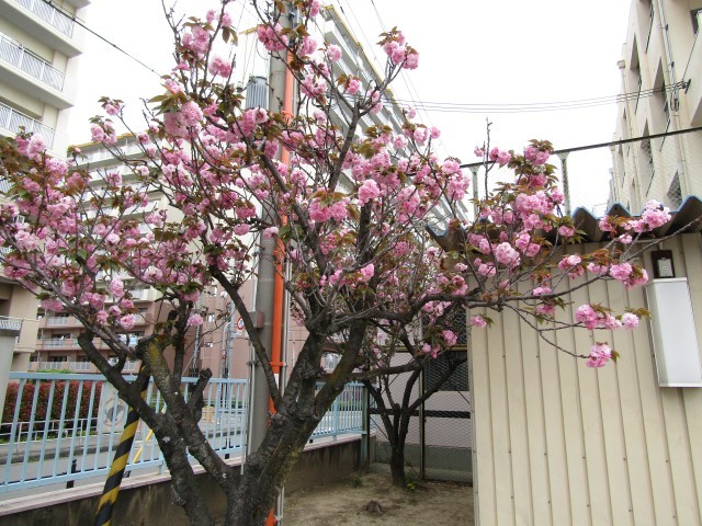 また、すぐ近くに八重桜が見事に咲いていました。調べると「関山(カンザン)」という品種だそうで、塩漬けにして桜湯として利用されたりもします。