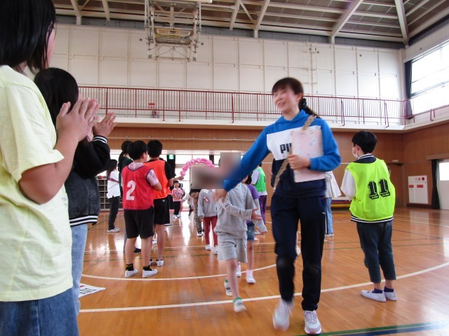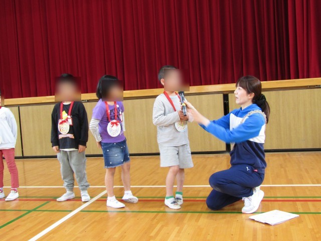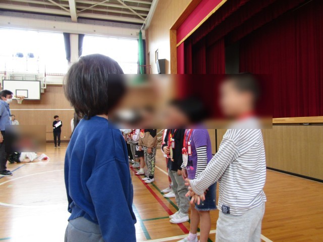 まず、児童会の代表から歓迎の言葉をかけてもらい、2年生から手作りのプレゼントをもらってうれしそうでした。
