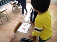 1年生は「ひらがな」の学習。「へ」の文字を習いました。「へのへのもへの」上手にな...