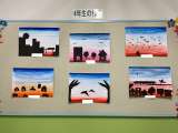 4年生の図工科の作品です。夕刻の茜色と、残っている空の色、そしてシルエットで表...
