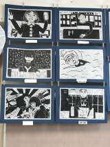 6年生の版画の作品です。思い出の1シーンを切り取っています。人物の動きや表情が...