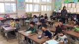 1年生が、グーチョキパーで姿勢体操をしていました。毎日しています。保健委員会の...