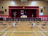 1年生が講堂で、来年度の1年生を迎えるための練習をしていました。大きな声でとても...
