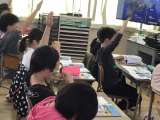 3年生は算数の授業で、時刻と時間の学習です。数直線を使って時間を求めます。時の長...