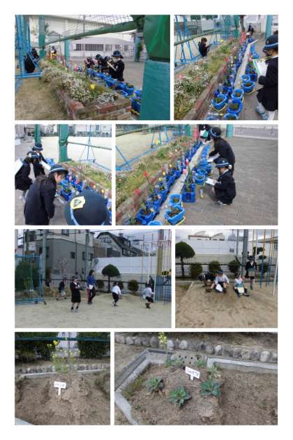 4月11日(木)、2年生が生活科の学習で、校庭の「春さがし」をしていました。