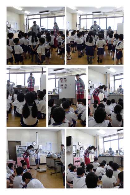 最初に、保健室の先生から保健室の使い方を教えていただき、身長と体重を計測しました。体操服も新鮮そうで、何か楽しそうにしていました!!