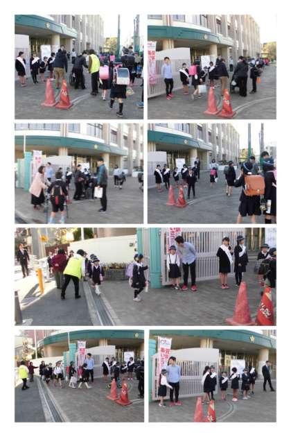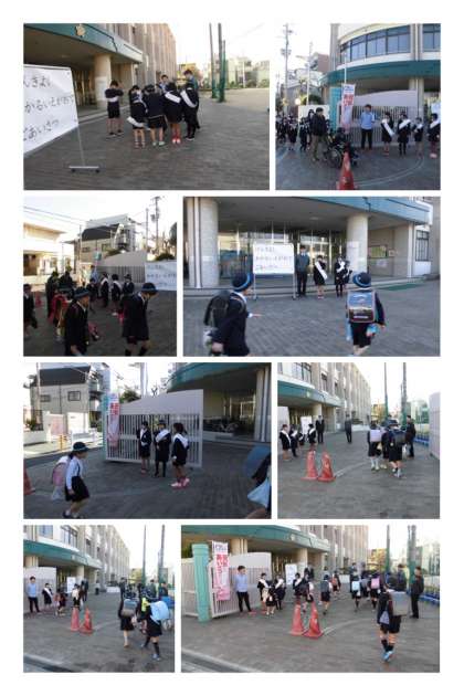 児童会の子どもたちが、自分たちで作ったタスキをかけ、元気にあいさつしていました!!