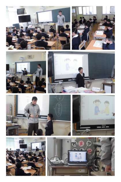 教科書の挿し絵を見ながら、こんな時はどんな声をかけるのかという問いに活発に答えていました。そして、発表は、デジタル教科書をプロジェクターで大きく映し出されたスクリーンの前でしました。子どもたちは、デジタル教科書やプロジェクター、書画カメラを使って学習していることを分かっているのでしょうか?子どもたちには、当たり前なのかもしれませんね!!