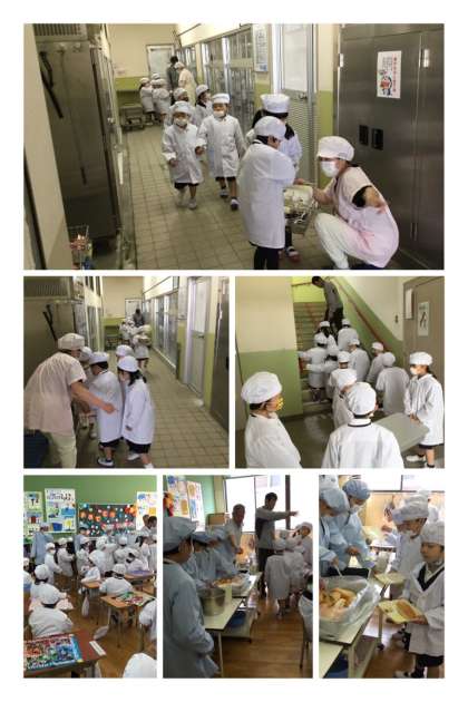 教室まで運ぶと6年生が待っていてくれて、配膳を手伝ってくれました!!