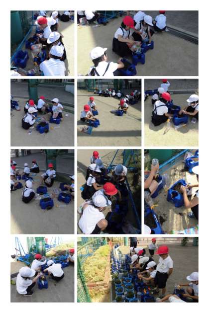 5月16日(木)、緑のカーテンに引き続き、1年生が生活科の学習で「アサガオ」の種を蒔いていました。一人ひとりが自分のプランターに土と肥料を入れてかき混ぜて、指で5つの穴を開け、種を入れていきました。どんな色の花が咲くか楽しみです!!