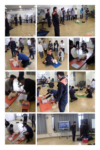 講師は、大正消防署の方に来ていただき、お話しを聞き、DVDを見て、実地訓練を行いました。勇気を出せば救える命があると、参加者も真剣に訓練していました!!