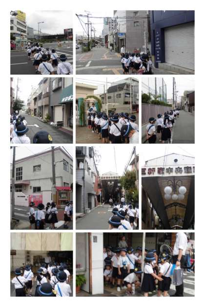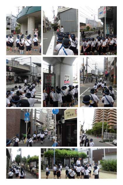 6月5日(水)、1年生が「通学路たんけん」に 行ってきました。子どもたちはきちんと2列並び、先生について校区を回りました。